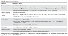 Response assessment involves physical examination for estimation of spleen size, assessment of hematologic parameters, and a bone marrow biopsy for evaluation of marrow response. It is recommended that the bone marrow biopsy be performed 4 to 6 months following cladribine administration, or after completion of 12 doses of pentostatin. Detailed response assessment criteria are shown in Table 3.