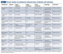 Surgery for metatarsal osteosarcomas can be challenging, as the compartments of the foot are narrow spaces with poor demarcation. Limb salvage surgery in the form of metatarsectomy needs proper preoperative planning and execution. Neoadjuvant chemotherapy will serve to downstage the tumor within the fascial barriers of the metatarsal compartment.It has also been postulated that osteosarcoma of the foot may have a better prognosis and survival compared to other osteosarcoma subsites. 10 This can be extrapolated from the fact that the majority are found to be low grade, and despite a long delay in treatment, there was no rapid increase in size and/or metastatic spread. However, tumor grade remains an important factor affecting survival— patients with higher grade tumors have worse survival. 8