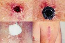 Chemosurgery with zinc chloride paste, therefore, helps avoid this phenomenon, Dr. Brooks said. The paste not only destroys tissue where it is applied, it also fixes the tissue into a firm mass. A delayed excision allows the specimen to be removed en bloc and examined histopathologically to determine margins. However, leaving a portion of the fixed tissue in place for several more days causes a strong vaccine-like reaction on the skin surface, indicating, according to Dr. Brooks, the beginning of a systemic immunologic response.