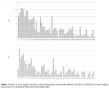 NEHC data from 10/1/2011 to 9/30/2012 showed that the rate of acute care hospitalizations within 30-days of the initiation of an episode of care for their heart failure patients was 31%. They found that 50% of hospitalizations occurred in the first 14 days of the episode, with the greatest risk occurring in the first 3 days ( Figure). The most common diagnoses leading to readmissions within 30 days were heart failure, respiratory infection, and other respiratory problems. They also analyzed their data to determine if there was regional variation among agency offices with the intent to understand if local factors such as staff practice patterns, local availability of care, relationships between home health and physician practices, etc. might identify opportunities for improvement.