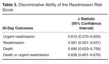 RRS for 30-day death was 1.13 (95% CI 1.08–1.18, P < 0.001) and the c statistic was 0.696 (95% CI 0.633–0.758, Table 2). The odds ratios for a 1-point increase in the RRS for 30-day death or 30-day urgent readmission was 1.09 (95% CI 1.07–1.12, P < 0.001) and the c statistic was 0.639 (95% CI 0.601–0.676, Table 2).Discussion