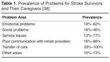 In a review of 27 studies with data from approximately 6000 patients and 3000 caregivers, 5 post-stroke problem areas and ranges of prevalence were identified ( Table 1 ). The authors noted a need for “a longer-term holistic approach to the rehabilitation of stroke patients and support for carers” [38].