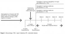 Antihypertensive or cholesterol-lowering medication use was not controlled for in this study. Patients were maintained on their prescribed dosing regimen for antihypertensive and cholesterol-lowering medications, with adjustments as needed per the standard of care for their diagnosis. Treatment outcomes for A1C < 7%, < 8%, or > 9% were prespecified. The BP treatment outcome was also prespecified per the statistical analysis plan; however, a change to the HEDIS quality measure treatment outcome for BP during the clinical study resulted in this analysis being no longer relevant. Therefore, analyses of the currently endorsed quality measures for BP were conducted post hoc. Quality measure assessments for A1C and BP treatment outcomes were conducted using data from the 24-week, double-blind treatment period.