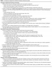 Our team interviewed clinical care providers and health administrators of 10 large hospitals that provided a high volume of emergency department care for children with asthma in the state [4]. We asked hospitals to describe their current protocols for asthma care in the emergency room, as well as recent and/or planned updates to these frameworks [5]. Topics included availability of specific asthma management modalities, compliance with national guidelines, employment of specialized asthma care personnel, and efforts toward performance improvement. Table 1 shows an excerpt of the interview guide that was utilized.The survey instrument had both open- and closed-ended questions and took about 15 minutes to complete. Participants were advised that publicly available document would not identify individuals or hospitals by name and they would receive the final summary report.