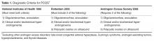 As with the variability in clinical symptoms, there is a lack of uniformity regarding biochemical testing for this disorder. There is no consensus on which biochemical tests should be done in girls suspected of having PCOS. For the initial evaluation of hyperandrogenemia, measurement of total and/or free testosterone is recommended [13,26–28]. Elevated free testosterone is recognized as the single most sensitive indicator for hyperandrogenemia, as the free fraction is the bioactive portion of serum testosterone. Most circulating testosterone is bound to sex hormone–binding globulin (SHBG), and obesity and androgen excess lower the level of SHBG, thus increasing free testosterone fraction. Clinical evidence of virilization should prompt a workup for disorders mimicking PCOS ( Table 2 ) [27]. Obtain baseline thyroid and prolactin levels in any adolescent with chronic anovulation to exclude hyperprolactinemia and thyroid disorders. Most patients with PCOS have higher luteinizing hormone/follicle-stimulating hormone (LH/FSH) ratio; however, the test does not have robust diagnostic utility due to the variability of serum LH levels commonly seen during the different stages of the menstrual cycle. In addition, no difference in LH/FSH ratio was found in a group of obese PCOS patients when compared with a control group [29]. Given the increased association of obesity with PCOS, evaluation for metabolic syndrome is crucial. Laboratory testing requires reliable assays with well-defined normal ranges, especially for free testosterone since the assays are less well standardized, which limits their usefulness [13]. Table 2 provides a comprehensive list of recommended testing that should be tailored to the patient’s presentation.