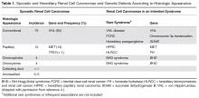 Several genetic syndromes have been identified by studying families with inherited RCC. Among these, von Hippel-Lindau (VHL) gene mutation is the most commonly found inherited genetic defect. Table 1 summarizes the incidence of gene mutations and the corresponding histologic appearance of the most common sporadic and hereditary RCCs [4].
