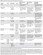 bevacizumab are other treatment options available to patients. Best supportive care should always be provided along with initial and subsequent therapies. Clinical trials are also an appropriate choice as first-line or subsequent therapies. All of these therapies require periodic monitoring to prevent and quickly treat adverse effects. Table 3