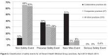 An unexpected finding was that with the exception of 1 practice, we found no increased reporting in comparator practices that had a patient safety coach. Additionally, we noted that general surgery practices report (or experience) very few ambulatory safety events, as a total of 4 events were reported for all 4 general surgery practices in 18 months.