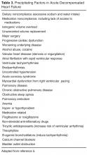 An important aspect in the management of ADHF is identifying precipitating factors and/or comorbid conditions ( Table 3 ) and treating them appropriately in conjunction with volume overload [5]. Echocardiogram is a widespread and readily available diagnostic tool providing important information on systolic and diastolic ventricular function as well as other structural heart disease abnormalities. Additionally, myocardial ischemia evaluation with noninvasive testing or cardiac catheterization should be performed if ischemia is a potential contributor to the patient’s heart failure symptoms. The most common cause of heart failure readmission is noncompliance with medications or dietary restrictions. Hospitalization provides an opportunity to educate the patient about their condition and rationale for therapy as well as identify barriers to appropriate self-management.