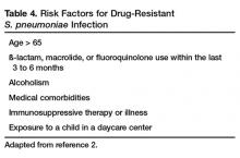 Of concern in the treatment of CAP is the increased prevalence of antimicrobial resistance among S. pneumoniae. The IDSA guidelines report that drug-resistant S. pneumoniae is more common in persons aged < 2 or > 65 years, and those with ß-lactam therapy within the previous 3 months, alcoholism, medical comorbidities, immunosuppressive illness or therapy, or exposure to a child who attends a day care center [16].