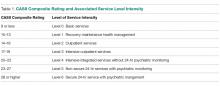 As mentioned, the CASII assesses the client across 6 key dimensions: risk of harm (including trauma issues), functional status, co-occurring conditions, recovery environment, resiliency/response to services, and involvement in services. Each dimension is scored along a 5-point rating scale, and a total or composite rating is calculated by adding the scores for each dimension. The composite rating corresponds with the level of service intensity needed. There are 7 levels of service intensity, ranging from Level 0 (corresponding with a composite rating of 9 or less) to Level 6 (corresponding with a composite rating of 28 or more) (Table 1).