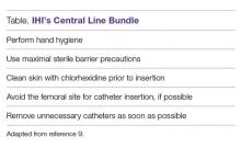 A CVC insertion bundle often uses 3 to 5 interventions together. The Keystone study used a bundled approach and many patient safety interventions employ this approach to improve patient care processes [11]. The IHI’s “central line bundle” is shown in the Table.