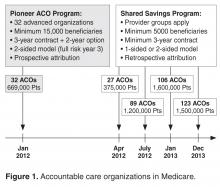 Since January 2012, an estimated 360 provider organizations have began contracts with the Centers for Medicare and Medicaid Services (CMS) as accountable care organizations in 5 cohorts, responsible for the spending and quality of over 5.3 million beneficiaries ( Figure 1 ) [10].A similar growth in private-sector ACO contracts among commercial insurers has boosted the total number of covered lives in the country under ACO arrangements to over 18 million [11,12].