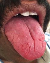 A 43-year-old man presented with halitosis and deep fissures on his tongue.