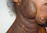 A 19-year-old woman presented with diffuse swelling on her neck and face that had been growing gradually for 12 years.