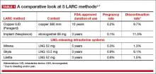 Skyla is another LARC option for womenseeking an LNG-IUS for contraception. It provides highly effective contraception for at least 3 years through the release of 13.5 mg of levonorgestrel over time. Skyla’s reduced levonorgestrel content, as compared with Mirena and Liletta, means that fewer users will experience amenorrhea (13% vs 25%).