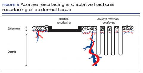 The concept of ablative resurfacing versus fractional resurfacing is borrowed from dermatology (FIGURE 4), understanding that tissue ablation and thermal denaturation occur at temperatures greater than 100°C, as occurs with carbonization of vulvar condylomata.