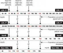 FIGURE Population percentile cut points and goals for LDL-C, LDL-P, ApoB, and non-HDL-C