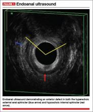 Endoanal ultrasound is easily performed in an office setting. It is well tolerated and provides anatomic detail of the sphincter musculature. We use a 13-MHz rotating probe to provide 3D imaging of the anal canal. The internal sphincter is represented by a hypoechoic circle surrounded by the hyperechoic external sphincter (FIGURE 1).