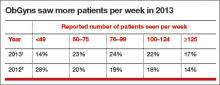 Under the Affordable Care Act (ACA), an organization’s revenue will still be determined largely by the volume generated by physicians. The percentage of ObGyns who saw 50 to 124 patients per week increased from 57% in 2012 to 69% in 2013 (TABLE).1,2
