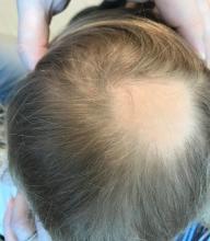 Alopecia areata (AA) is a nonscarring alopecia, within a set of diseases characterized by the preservation of hair follicles and therefore the potential for future hair regrowth.1 AA is believed to be caused by a breakdown of the immune-privileged nature of hair follicles, resulting in T-lymphocytes targeting the hair follicle directly, shifting follicles to early catagen or telogen phase, but sparing follicular stem cells, thereby allowing the follicle to regenerate in the future.1-3 Risk factors include family history of AA, thyroid disorders, as well as iron and vitamin D deficiency.4,5 It characteristically presents with focal, well-demarcated patches of hair loss in the scalp, typically with background skin normal to slightly pink.3,6 Exam can show “exclamation point” hairs consisting of hairs that are narrow at their base and wide at the distal end.3,7 Patients may also exhibit eyebrow and eyelash loss as well as nail changes including nail pitting and splitting.8 Diagnosis is typically made clinically but is supported by a positive hair pull test, where hairs are pulled from the periphery of an alopecic lesion; the presence of greater than 10% of hairs plucked from the scalp indicates a positive result.9,10