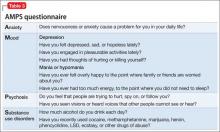 Clinical assessment of psychiatric illness is essential when evaluating chronic pain patients. Using the acronym AMPS (Anxiety, Mood, Psychosis, and Substance use disorders) (Table 3) is an efficient way for the clinician to ask pertinent questions regarding common psychiatric conditions that could have a direct effect on chronic pain.24 Head pain can be more intense when combined with untreated anxiety, depression, psychosis, or a substance use disorder. Untreated anxiety, for example, can amplify sympathetic response to pain and complicate treatment.