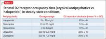 • switching from one atypical to another with lesser affinity for striatal D2 receptor, such as clozapine or quetiapine.16,17