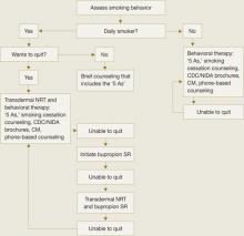 Because of bupropion SR’s contraindications and potential side effect profile, we suggest NRT in combination with smoking cessation counseling as a first-line treatment for young smokers. We recommend beginning with transdermal NRT because of the low likelihood of underdosing with the patch’s once-daily application.20 With either NRT or bupropion SR, schedule follow-up appointments to target relapse prevention and solve any issues that arise.