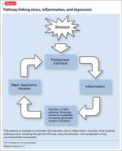 Acute and chronic stress is associated with increased availability of proinflammatory cytokines and decreases in anti-inflammatory cytokines.3,24 One theory looks to glucocorticoid response to stress as an explanation. Miller et al25 found glucocorticoid sensitivity decreased among depressed women after exposure to a mock job interview stressor and increased among nondepressed controls. Because glucocorticoids normally stop the inflammatory cascade, this finding suggests depressed individuals may not be able to control inflammation during stress.26 At the level of genetic expression, there is increased transcription of proinflammatory genes in response to stress as a result of increased activation of nuclear factor kappa B.3,27