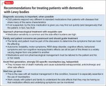 In addition to these treatments, nonpharmaceutical interventions should be employed from the earliest stages of diagnosis and treatment (Table 2). See the Figure for an algorithm for treating DLB. These include educational and behavioral interventions, social support, psychological interventions, and environmental therapies and modifications.