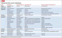 It is well known that OTC medication abuse is a growing medical problem (Table 2). Antihistamines, including diphenhydramine, are readily available to minors and adults. Because of the powerful sedating effects of antihistamines, many adolescent health practitioners give them to patients who have insomnia as a sleep aid.8 As in our case, antihistamines are used recreationally for their hallucinogenic effects, at dosages of 300 to 700 mg.9 Severe symptoms of toxicity, such as delirium and psychosis, seizures, and coma, occur at dosages ≥1,000 mg.9