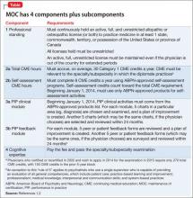 In addition to this review, I urge all physicians who are subject to MOC to read the 20-page revised MOC Program bookleta (version 2.1, May 2014).5