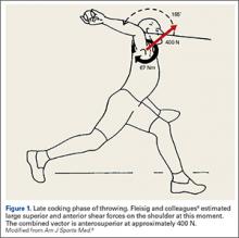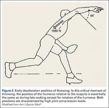 The mechanics of pitching have been analyzed extensively. Fleisig and colleagues8 performed kinematic and electromyographic analyses of pitchers to identify the critical moments of pitching (defined as where the forces are highest and injury is most likely going to occur). They found 2 moments where the forces about the shoulder are highest during pitching: the late cocking phase (defined by the point where the humerus reaches maximal external rotation); and the early deceleration phase (defined by the point when the ball is released). If throwing is important in natural selection of humans, then the shoulder anatomy should be optimized to withstand the forces generated in these positions.