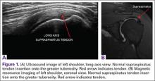 Ultrasound is similar to MRI as it images tissues and gives us ideas whether that tissue is normal, damaged, or diseased (Figures 1A, 1B). MRI is based on magnetics and large machines that cannot be moved. MRI yields planar images that can only be changed by changing the position of the limb or body in the MRI tube. This can create an issue with obese patients or with postoperative patients who cannot maintain the operated body part in one position for the length of the MRI scan. Ultrasound is better tolerated by patients without the need for claustrophobic large machines (Table 1). In 2004, Middleton and colleagues7 surveyed 118 patients who obtained an ultrasound and MRI of the shoulder for suspected rotator cuff pathology; ultrasound had higher satisfaction levels, and 93% of patients preferred ultrasound to MRI.