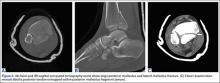 A 67-year-old man slipped and fell on ice while jogging and subsequently presented to the emergency department with a closed bimalleolar ankle fracture-dislocation. Plain radiography (Figure 1) and computed tomography (CT) showed an oblique lateral malleolar fracture and a large posterior malleolar fracture. Further examination of the CT scan revealed entrapment of the tibialis posterior tendon within the posterior malleolar fracture (Figure 2).