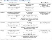 In October 2010, dabigatran became the first NOAC approved by the US Food and Drug Administration (FDA) for the prevention of arterial thromboembolic events in patients with nonvalvular AF, on the basis of the results of the RELY (Randomized Evaluation of Long-Term Anticoagulation Therapy) trial. Dabigatran is an oral factor IIA (thrombin) inhibitor. From time of ingestion, dabigatran takes 1.25 to 3 hours to reach peak plasma concentration. It has a half-life of 12 to 14 hours, is excreted predominantly by the kidneys (80%), and is renally dosed. The usual dose is 150 mg 2 times daily if creatinine clearance (CrCl) is >30 mL/minute, or 75 mg 2 times daily if CrCl is 15 to 30 mL/minute.3 Dabigatran is not recommended for patients with CrCl <15 mL/minute.