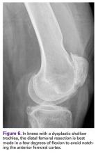 Notching the anterior femoral cortex when in-between femoral sizes or when there is a preexisting dysplastic or shallow trochlea (Figure 6)