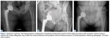 Anatomical locations of IAFs have been associated with variable outcomes. In a 2015 series, Laflamme and colleagues 6 found posterior column stability a crucial factor in implant stability. Fractures with posterior column instability had a 67% failure rate, and patients with an intact posterior column reliably had osteointegration occur without further intervention. 6 In our series, fractures that violated the posterior column had similar results. All these fractures required further operative intervention, either at the index procedure or in the early postoperative period. Loss of posterior column stability prevents secure fixation of the acetabular component, thereby preventing successful hip reconstruction. One posterior column fracture in our series was not recognized until after surgery, on a PACU radiograph, and 1 posterior column fracture was fully appreciated only after postoperative computed tomography (CT) was obtained during immediate hospitalization after the index procedure. In both cases, conservative management was unsuccessful. Revision arthroplasty (and in 1 case late posterior column fixation) was performed to achieve adequate reconstruction. There were no failures after posterior column fixation. In cases of posterior wall or column fracture, we recommend early aggressive treatment, preferably at the time of index arthroplasty, to prevent catastrophic failure.