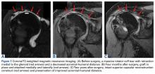 Conventional treatments for irreparable massive rotator cuff tears (RCTs) have ranged from nonoperative care to débridement and biceps tenotomy, 1,2 partial cuff repair, 3,4 bridging patch grafts, 5 tendon transfers, 6,7 and reverse total shoulder arthroplasty (RTSA). 8,9 Superior capsular reconstruction (SCR), originally described by Mihata and colleagues, 10 has been developed as an alternative to these interventions. Dr. Hirahara modified the technique to use dermal allograft instead of fascia lata autograft. 10,11