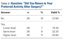 Outcomes of PFA vary because of evolving patient selection, implant design, surgical technique, and return-to-activity expectations.21,22 Most PFA outcome studies focus on implant survivorship, complication rates, and postoperative knee scores.23-28 PFA studies focused on return to activities are limited. Kooijman and colleagues7 and Mertl and colleagues29 reported good or excellent clinical results of PFA in 86% and 82% of patients, respectively. Neither study included a comprehensive analysis of postoperative functional status. Similarly, De Cloedt and colleagues30 reported good PFA outcomes in 43% of patients with degenerative joint disease and in 83% of patients with instability. Specific activity status was not described. Dahm and colleagues31 and Farr and colleagues32 suggested postoperative pain resolution motivates some PFA patients not only to resume preoperative activities but to start participating in new, higher level activities after pain has subsided. However, the studies did not examine the characteristics of patients who returned to baseline activities and did not examine return-to-sports rates.