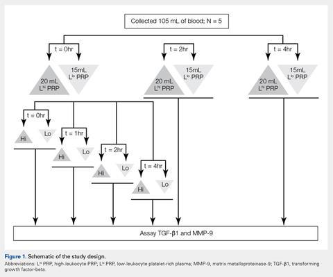 The primary aim of this study was to determine if retention of blood or PRP at room temperature for various time intervals had an effect on final growth factor or catabolic cytokine concentration. Bioactive transforming growth factor-β1 (TGF-β1) and matrix metalloproteinase-9 (MMP-9) were measured as representatives of growth factors and catabolic cytokines, respectively. The secondary aim was to identify if manual platelet counts were an accurate reflection of automated counts. The outcomes of these experiments should provide immediately relevant information for the clinical application of PRP.