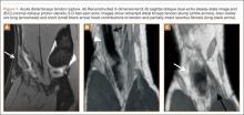 This case is unique in that the patient was a physician who procured multiple magnetic resonance imaging (MRI) examinations during the postoperative period and again at 1-year follow-up. We witnessed formation of a small focus of HO, which entered and significantly narrowed the radioulnar space on forearm pronation on dynamic MRI. There was no obvious clinical evidence for retearing; high-grade partial-thickness tendon retearing was diagnosed on MRI. This prompted a gentler rehabilitation protocol. Subsequent scar formation and tendon remodeling allowed the patient to return to full activity by 1-year follow-up, confirming recent reports that intrasubstance signal abnormalities4 and even rerupture on MRI are not correlated with symptoms.5 The patient provided written informed consent for print and electronic publication of this case report.