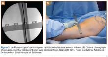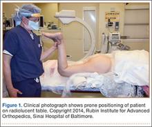 Advantages of a retrograde starting point include a more concentric trajectory (vs that of an antegrade starting point) and more efficient canal pressure reduction, which might decrease the risk of intraoperative fat embolization.10 This technique offers a more efficient solution to any procedure that requires the prone position, and it avoids the need to reposition, reprepare, or redrape the extremity. It is also very useful in treating obese patients.