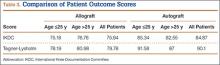 IKDC and Tegner-Lysholm outcome scores for allograft and autograft groups are shown in Table 3. In patients 25 years or younger, IKDC scores were 75.18 after allograft reconstruction and 85.34 after autograft reconstruction—a significant difference (P = .045). In addition, Tegner-Lysholm scores were significantly higher after autograft reconstruction (91.58) than allograft reconstruction (78.19) in these younger patients (P = .003) (Table 3). IKDC and Tegner-Lysholm scores were not significantly different for older patients (Ps = .241 and .211, respectively).