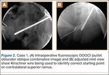 Fractures of the superior and inferior pelvic rami are common in pelvic ring injuries.1 These fractures are routinely treated successfully without surgery.2 When the pelvic ring is injured, and ramus fracture or fractures represent a point of instability, surgical fixation can be performed to impart stability and reduce discomfort.3 Patients with pubic ramus fracture(s) have overall greater long-term morbidity and mortality.4 Operative stabilization of the superior pubic ramus can be achieved with open reduction and internal fixation, external fixation, and percutaneous medullary screw fixation.5-8 Inferior ramus fractures are seldom treated directly and acutely with operative reduction and fixation, as the mechanical advantage inferior ramus fixation provides is unknown.